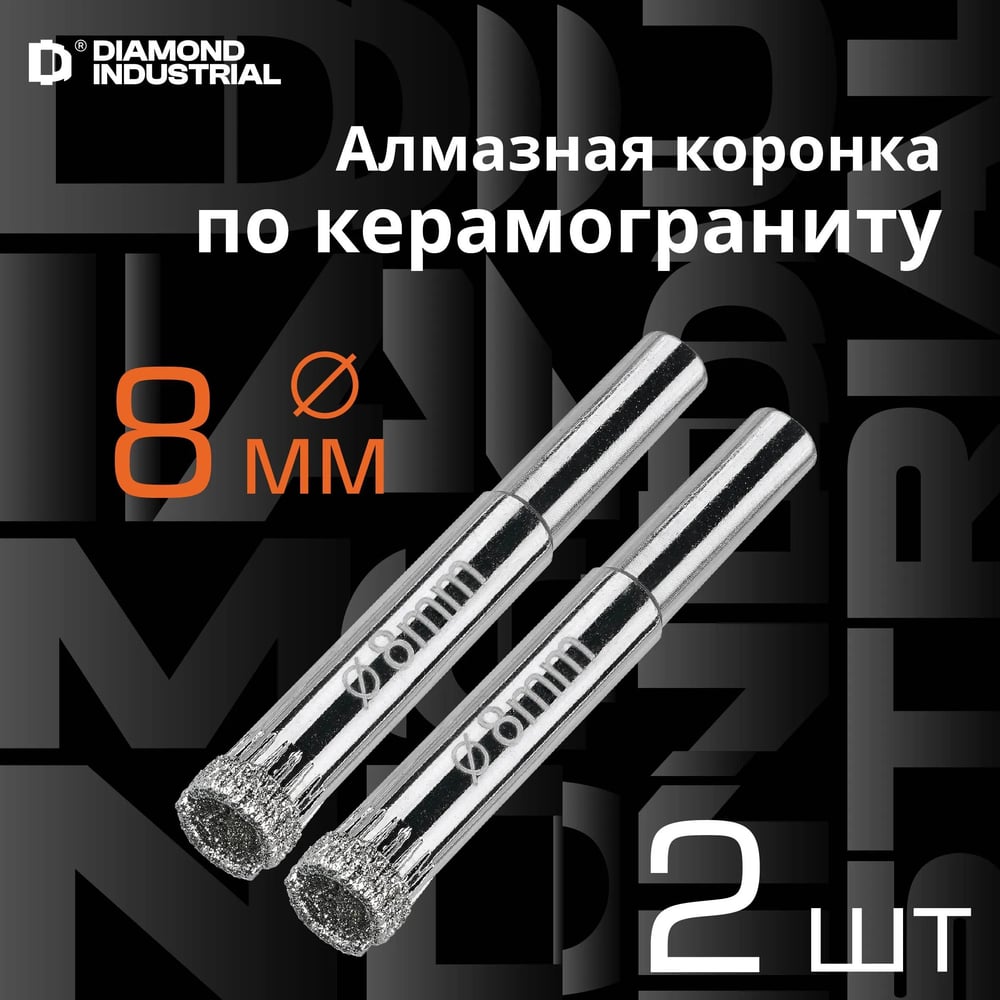 Коронка алмазная по керамограниту и керамике 8 мм, 2 шт. Diamond Industrial DIDCSC008