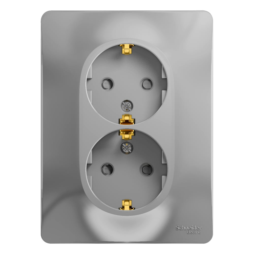 2-местная розетка Systeme Electric скрытой проводки Glossa 16А IP20 с заземлением защитные шторки в сборе алюминий GSL000326