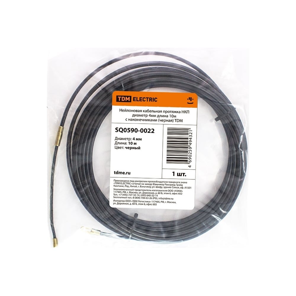 Нейлоновая кабельная протяжка TDM ELECTRIC НКП диаметр 4 мм, длина 10 м, с наконечниками, черная SQ0590-0022