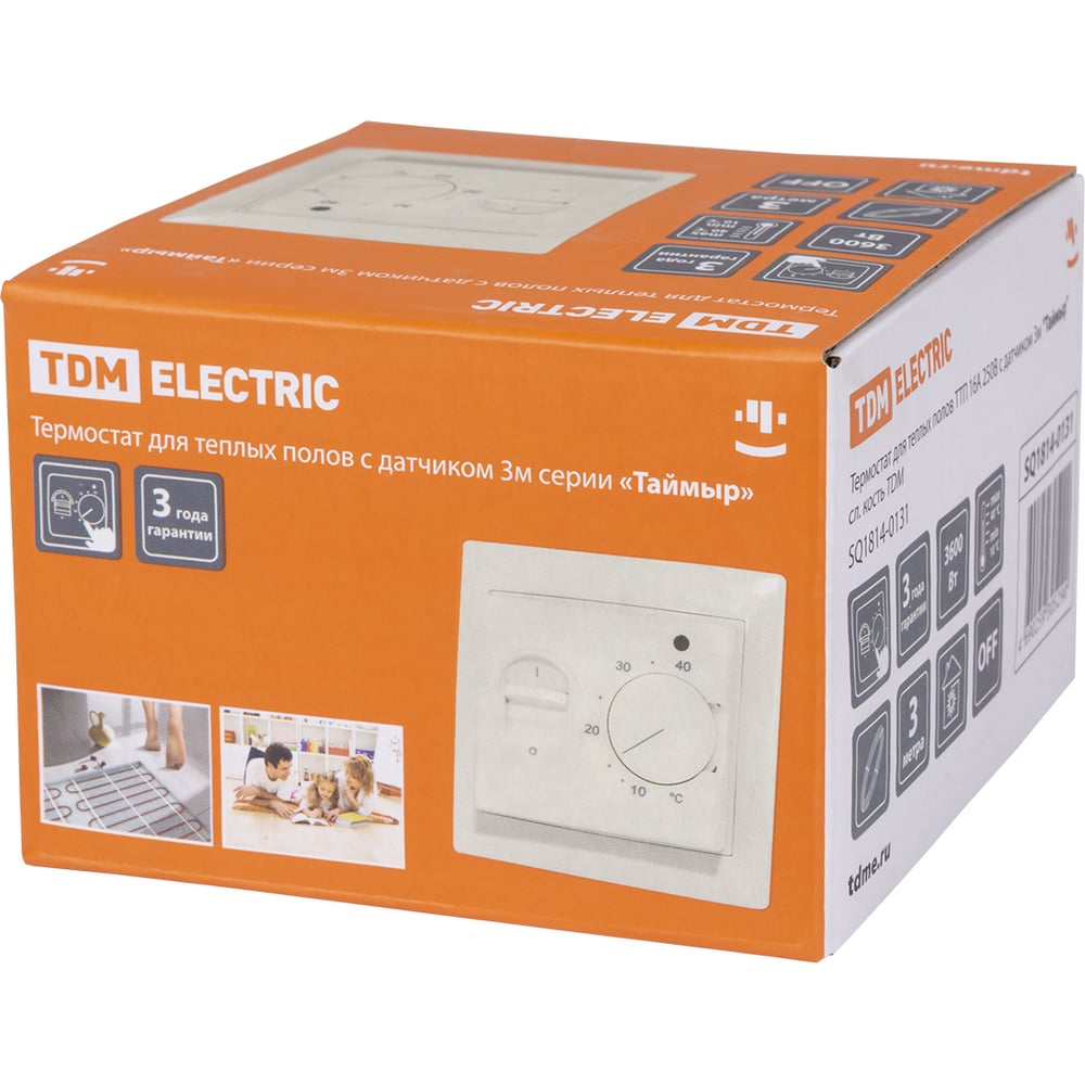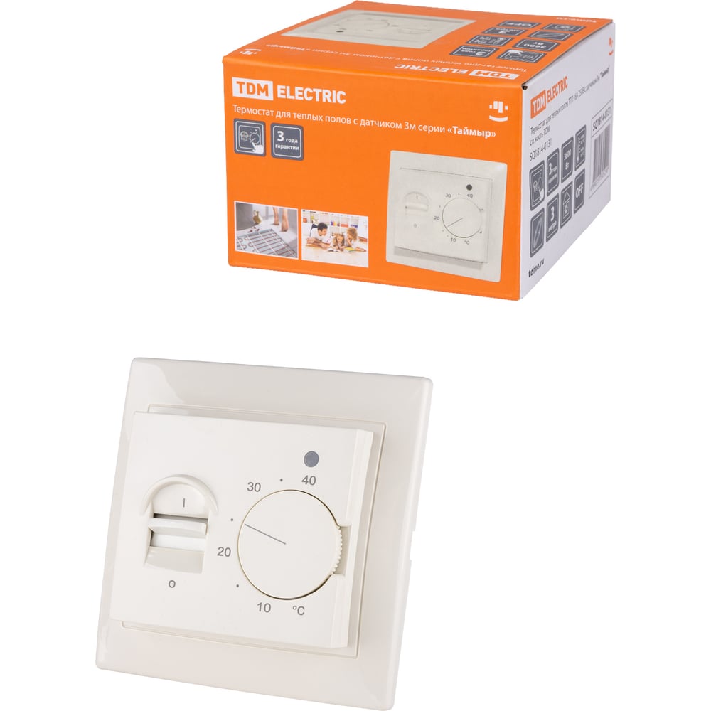 Терморегулятор TDM Термостат для теплого пола ТТП 16А 250В с датчиком 3м "Таймыр" сл. кость Electric SQ1814-0131