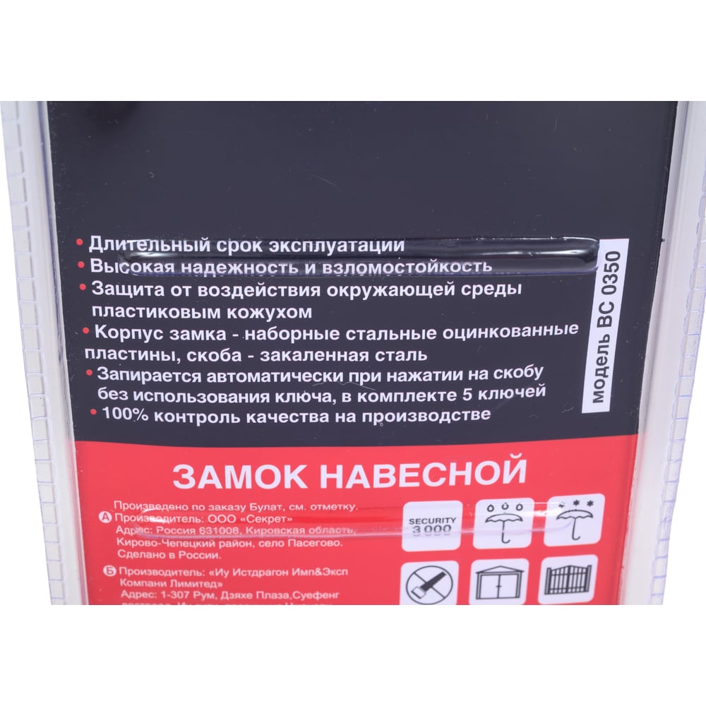 Всепогодный навесной замок БУЛАТ ВС 0350 13455