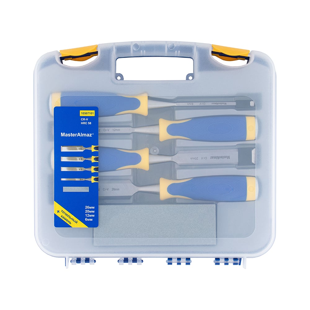 Набор стамесок МастерАлмаз в пластиковом кейсе 6/12/20/26 мм+точильный камень 10507101
