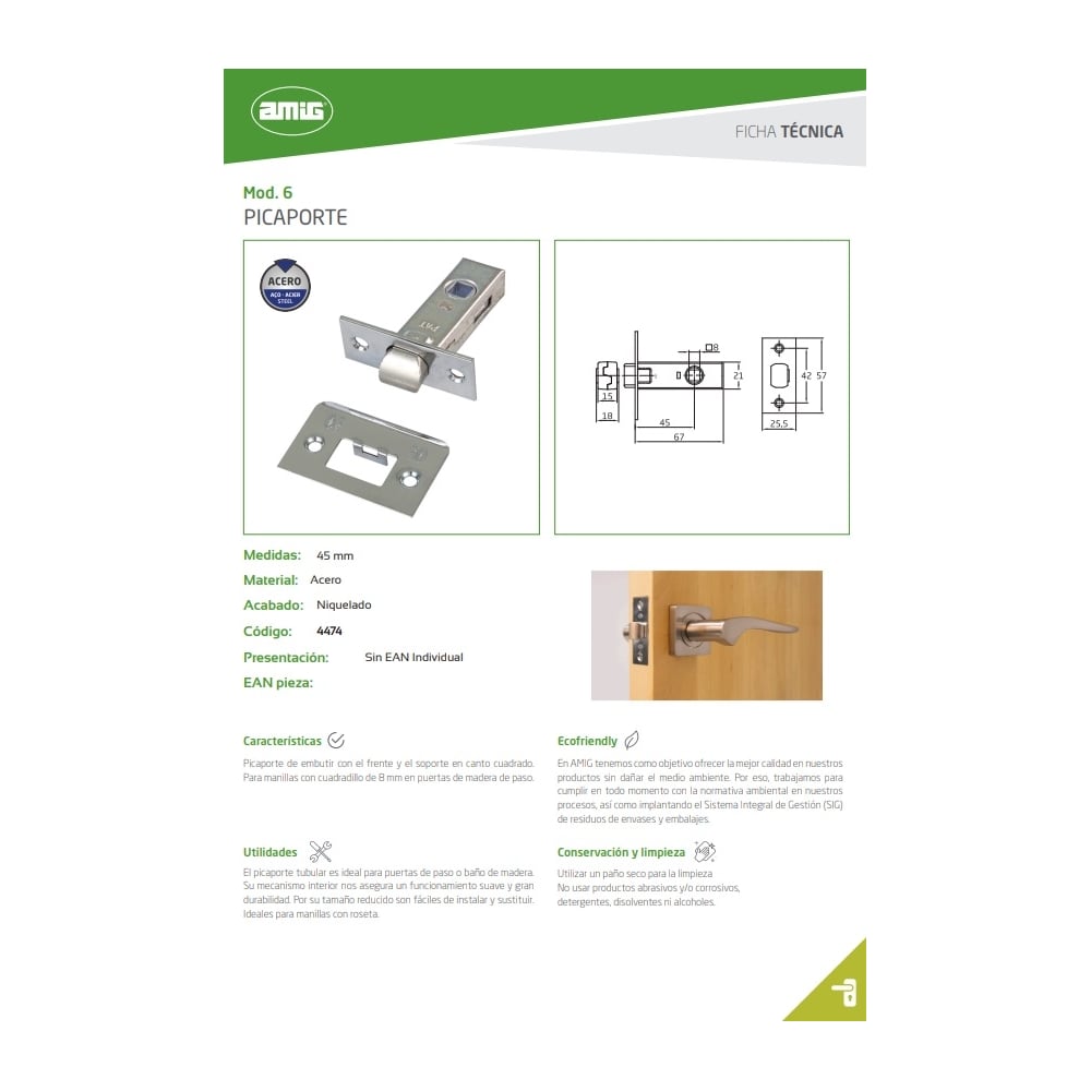 Дверная защелка Amig 6-45 NI