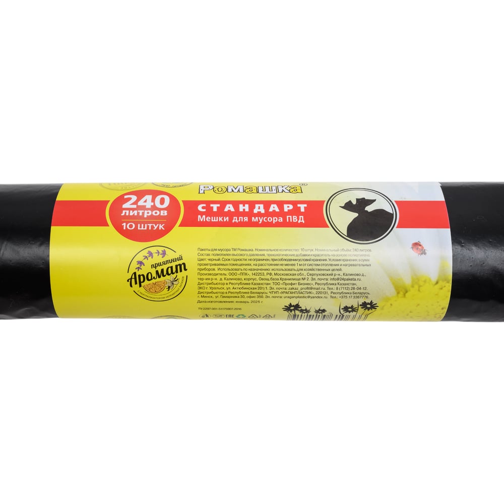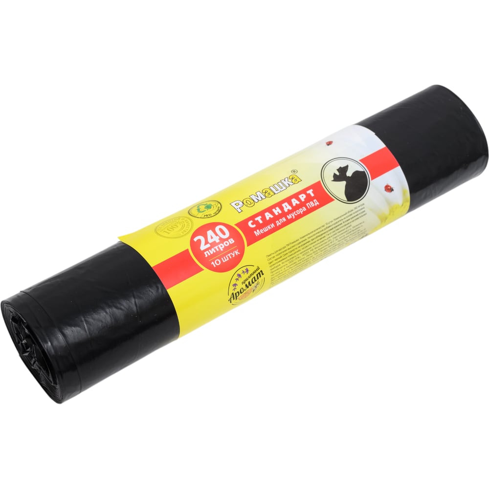 Мешки для мусора в рулоне Стандартные (10 шт; 240 л; черные; ПВД; 30 мкм; 90х130 см) Ромашка ВР-0073Н