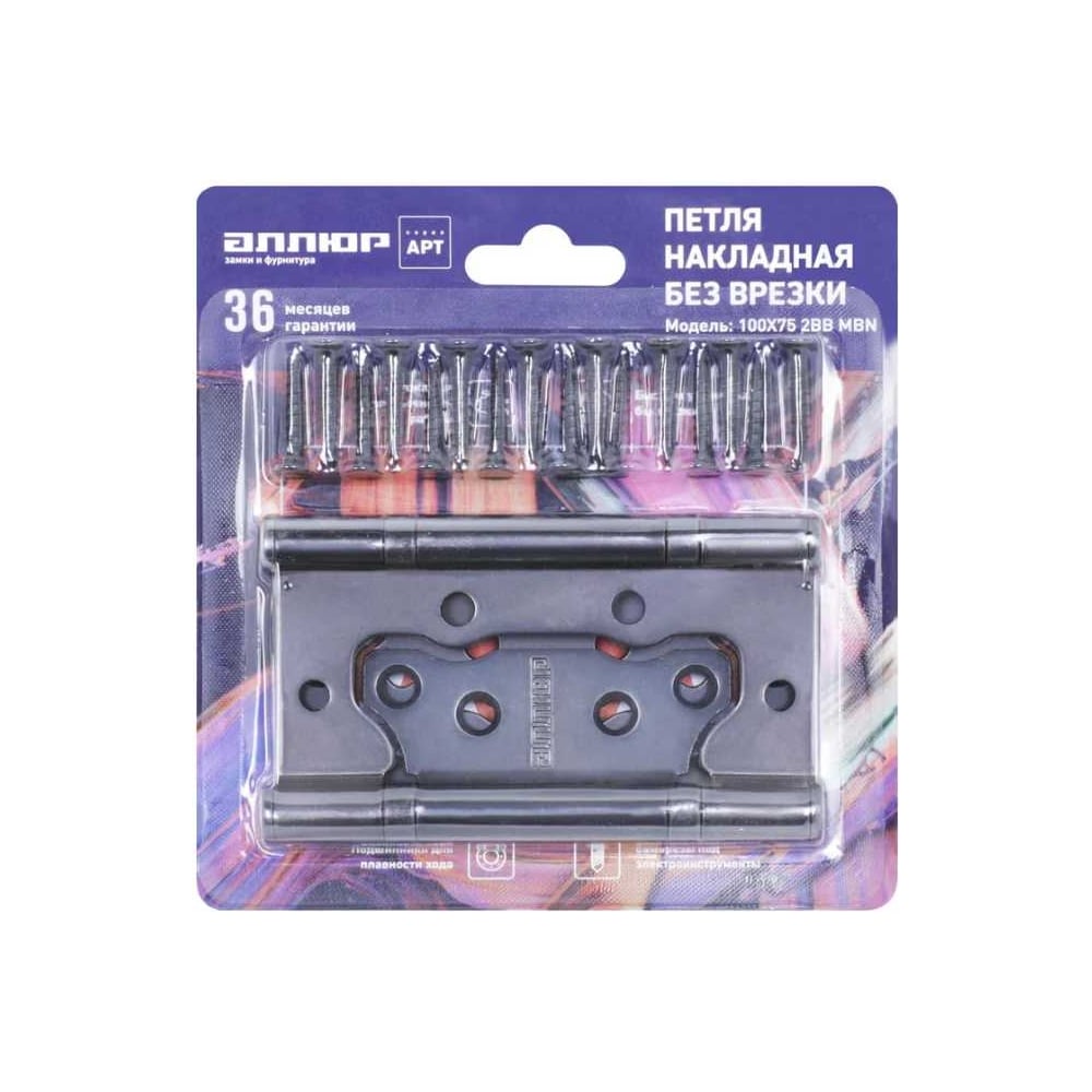 Накладная петля без врезки Аллюр 2BB MBN (100х75 мм; 2.5 мм; графит; 2 шт; коробка) 12160
