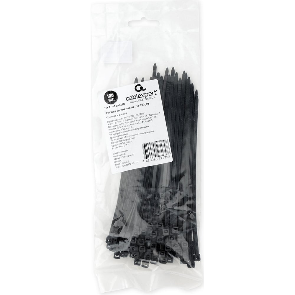 Пластиковые стяжки Cablexpert 150 мм х 3.6 мм, чёрные, 100 шт. NYT-150x3.6B