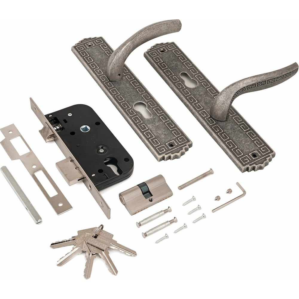 Врезной замок с ручками Аллюр ЗВ4-70.06 AS состаренное серебро 10572