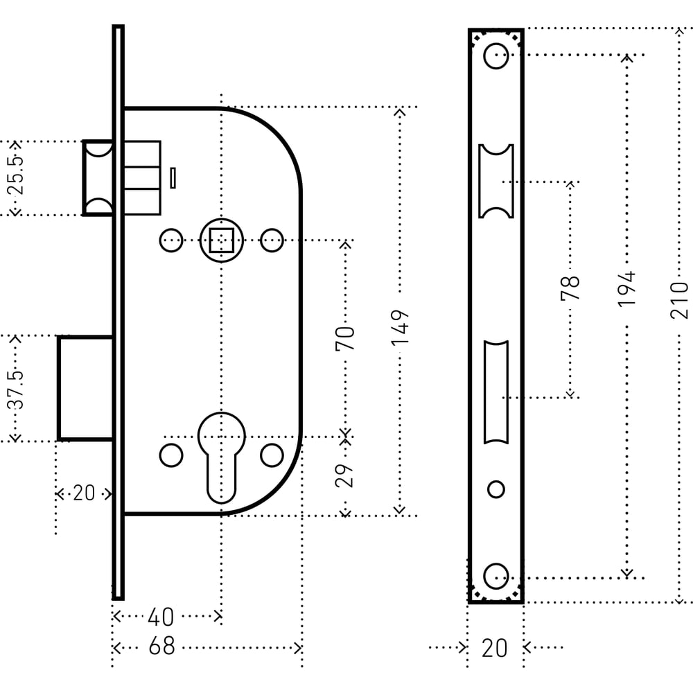Высота 210 мм Длина 68 мм Комплектация в сборе Ширина 20 мм Класс товара Бытовой Коллекция нет Назначение для деревянных дверей Влагозащищенный нет С защелкой да Кодовый нет Ручки в комплекте да С вертушкой нет Уличный да Антивандальный нет Сейфовый нет Двухсистемный нет Морозоустойчивость да Противопожарный нет Удаление ключевого отверстия (Backset) 40 мм Вылет ригеля 20 мм Тип ключа английский Количество ригелей 1 шт Форма ригеля прямоугольник Количество ключей 5 шт Тип замка врезной Межосевое расстояние 70 мм Тип механизма секретности цилиндровый Тип запирания не автоматическое Направление открывания двери левое/правое Класс безопасности 1 Цвет лицевой планки серебро