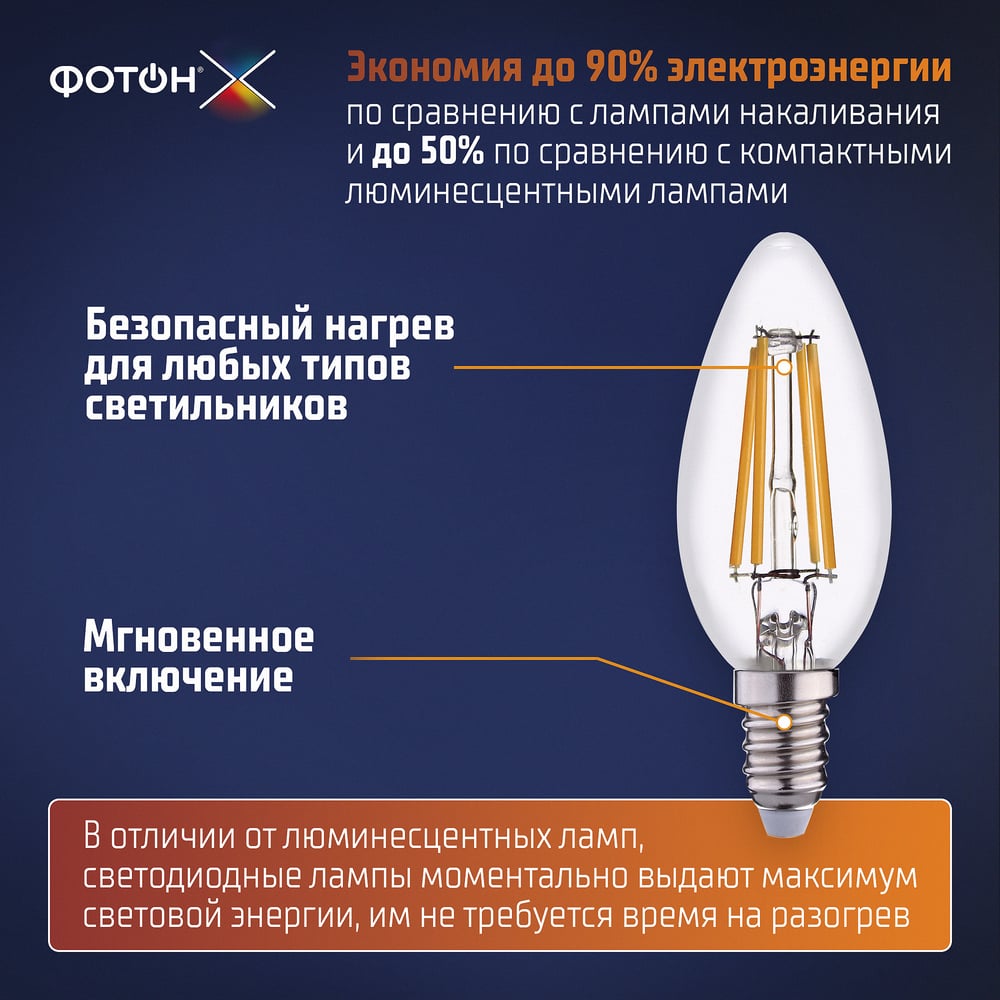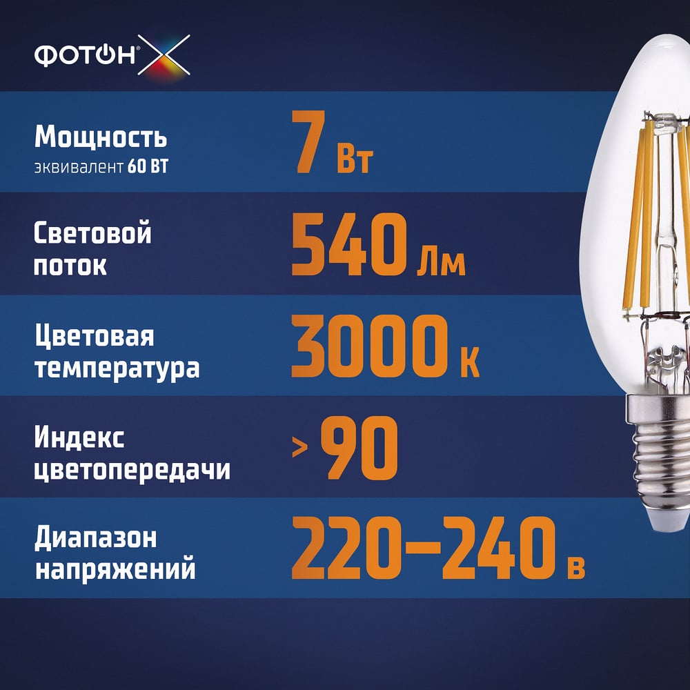 Светодиодная лампа ФОТОН филаментная LED FL B35-C 7Вт E14 3000K, теплый свет, 23956