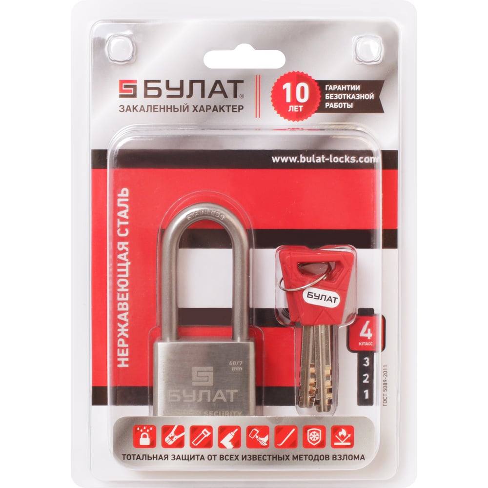 Навесной замок БУЛАТ ВС 3-С40-01 НС (нержавеющая сталь; 7 мм) 13988
