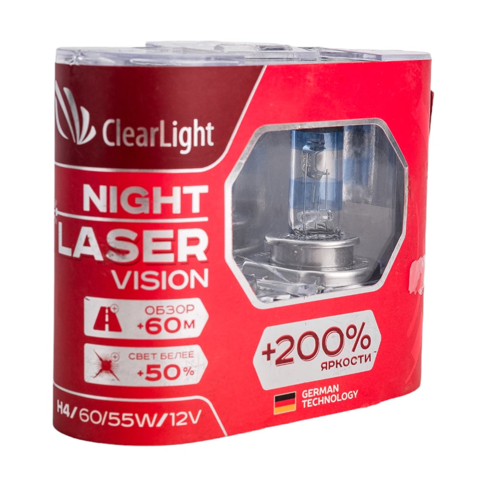 Комплект ламп Clearlight H4 12V-60/55W Night Laser Vision +200% Light, 2 шт. MLH4NLV200