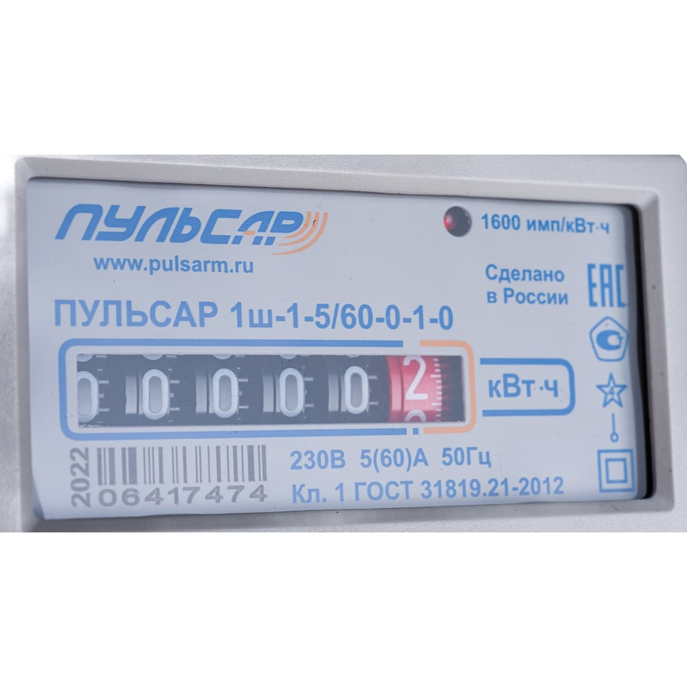 Однофазный однотарифный механический счетчик электроэнергии ПУЛЬСАР 1ш-1-5/60-0-1-0 Р00073907