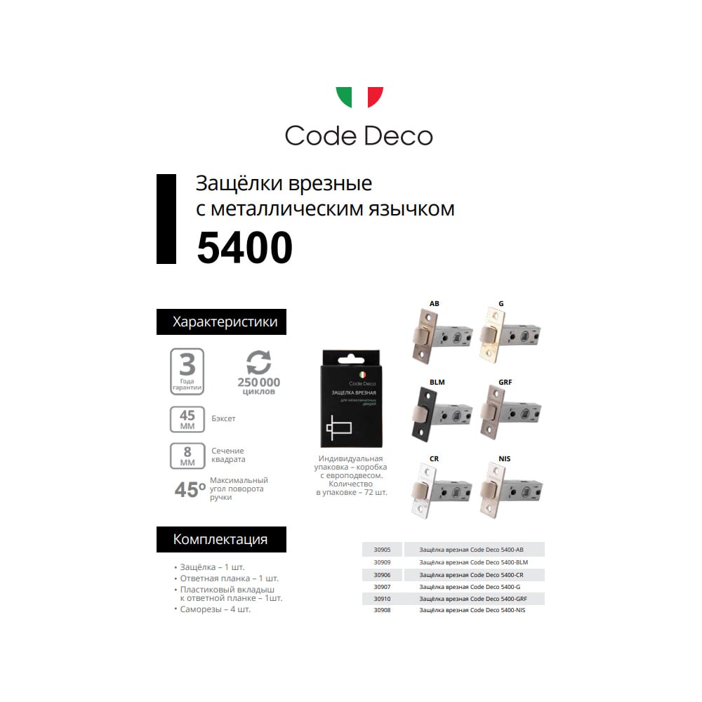 Врезная защелка Code Deco 5400-BLM 30909