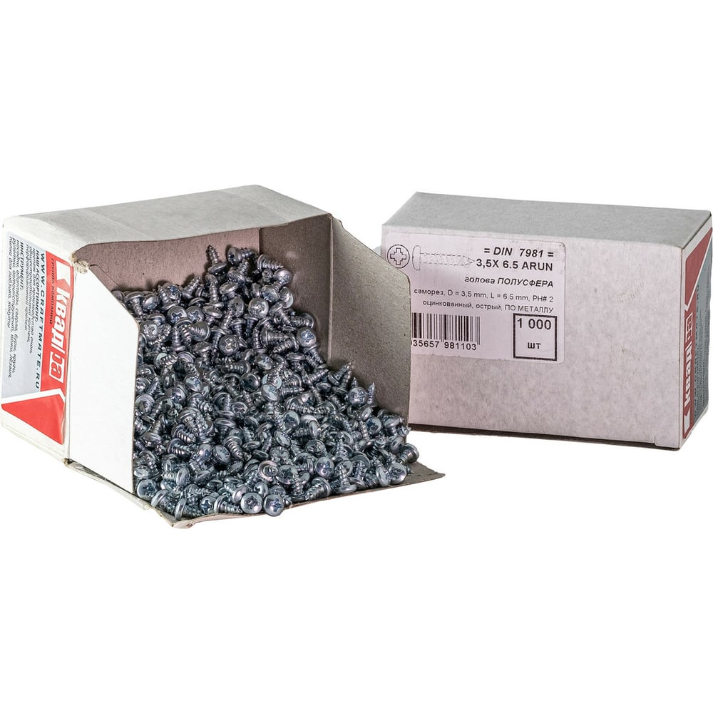 Саморез КВАДРА DIN 7981, 3.5x6.5, цинк, полусфера, шлиц PH2, острый, кор. 1000 шт. 813565201001