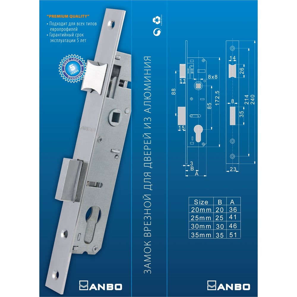 | Удаление ключевого отверстия (Backset) | 25 мм |