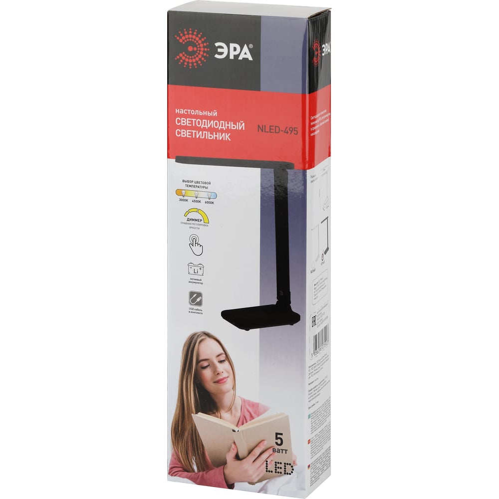 Настольный светодиодный светильник ЭРА NLED-495-5W-BK аккумуляторный, складной, черный Б0051473