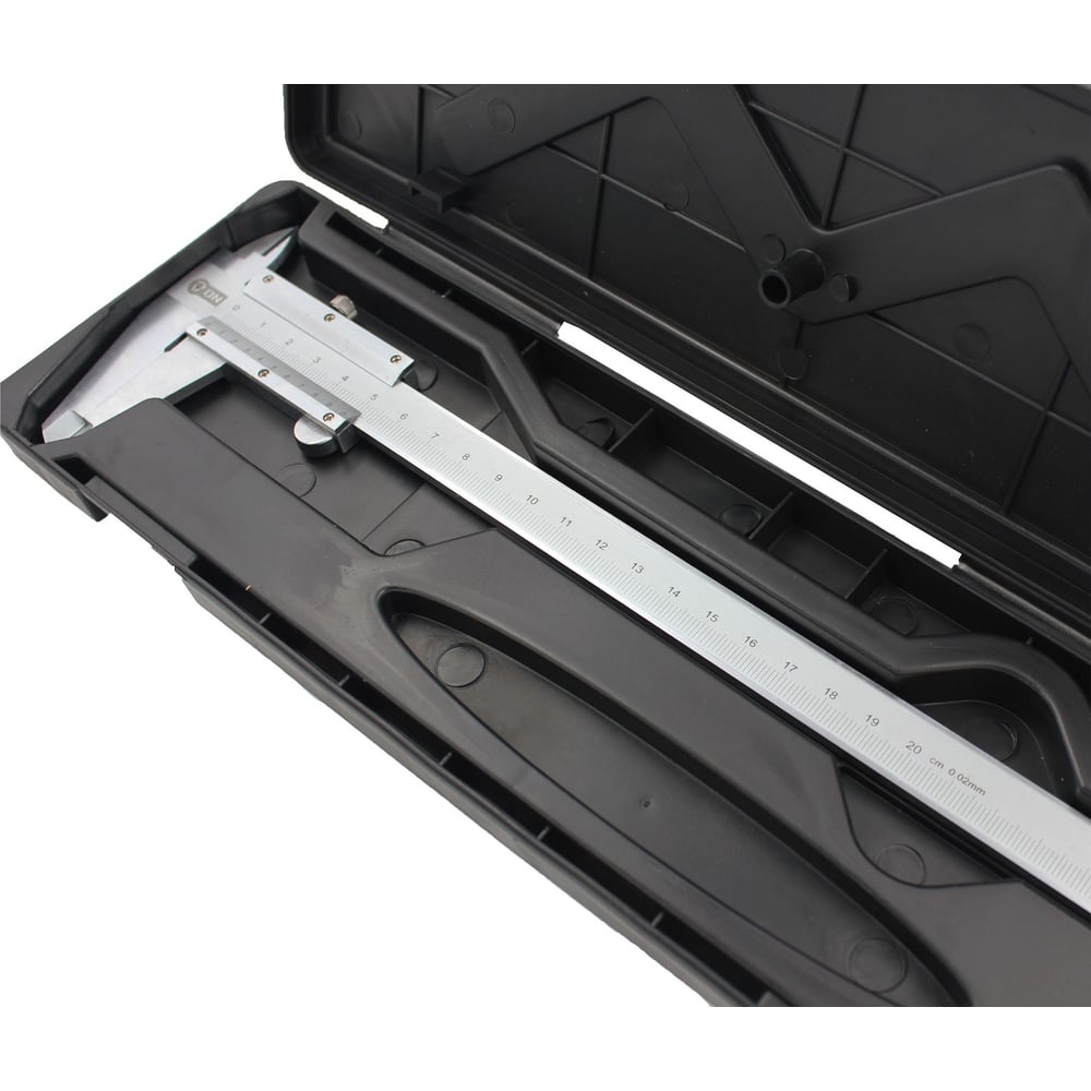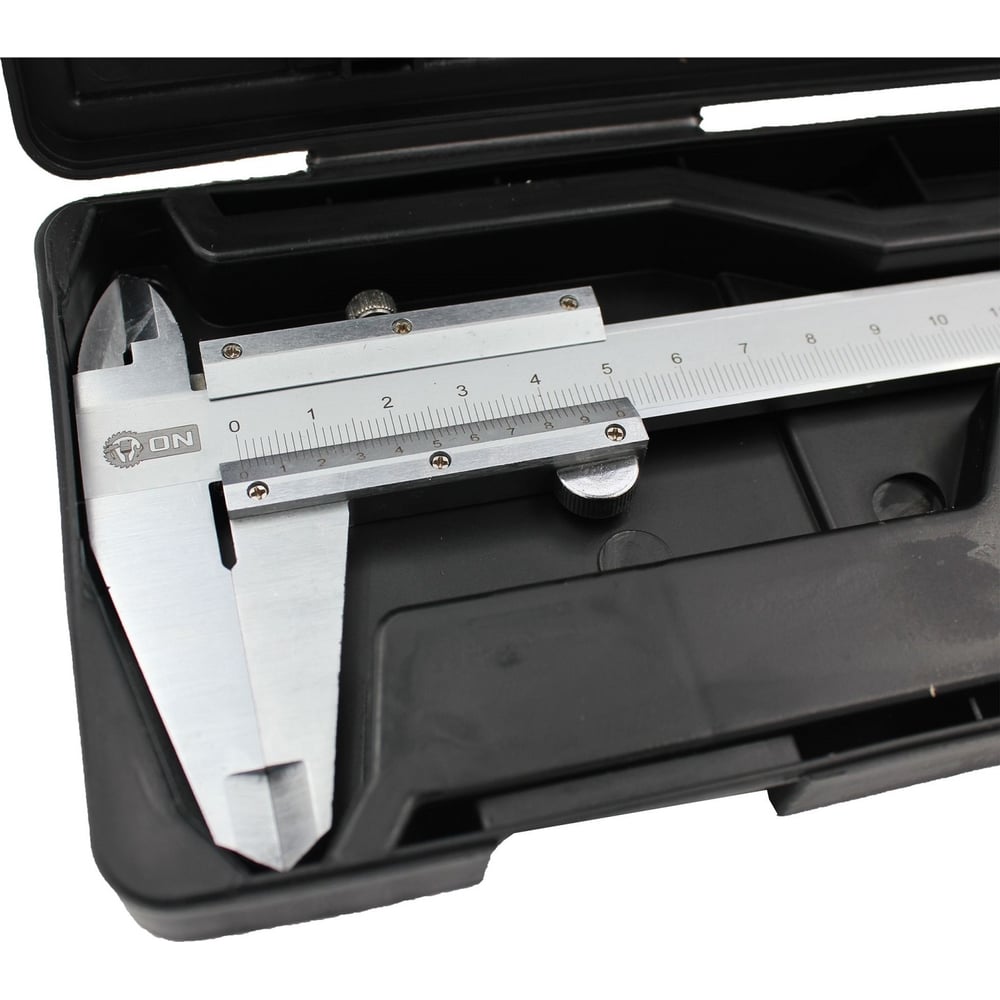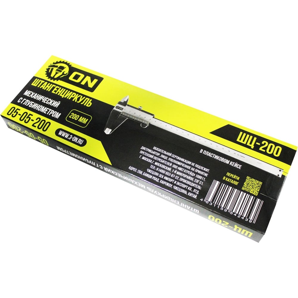 Штангенциркуль ON металлический, 200 мм с глубиномером, шаг 0,02мм, пластик кейс 05-05-200