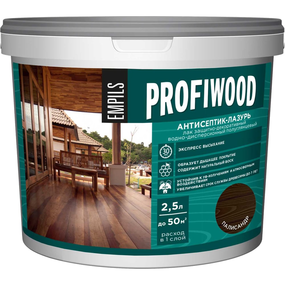 Водно-дисперсионный антисептик-лазурь PROFIWOOD (декоративный; атмосферостойкий; палисандр; 2.5 кг) 70024