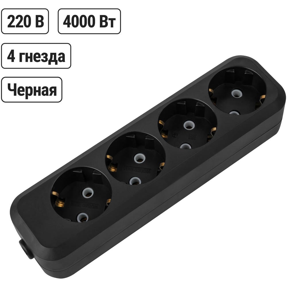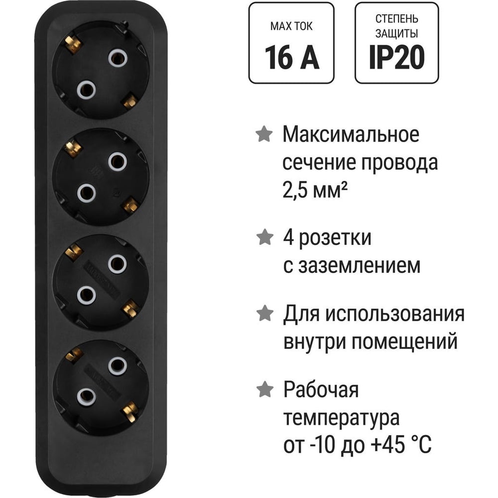 Розеточная колодка TDM ELECTRIC 4 гнезда 2П+3 16А 250В черная серии Народная SQ1806-0429