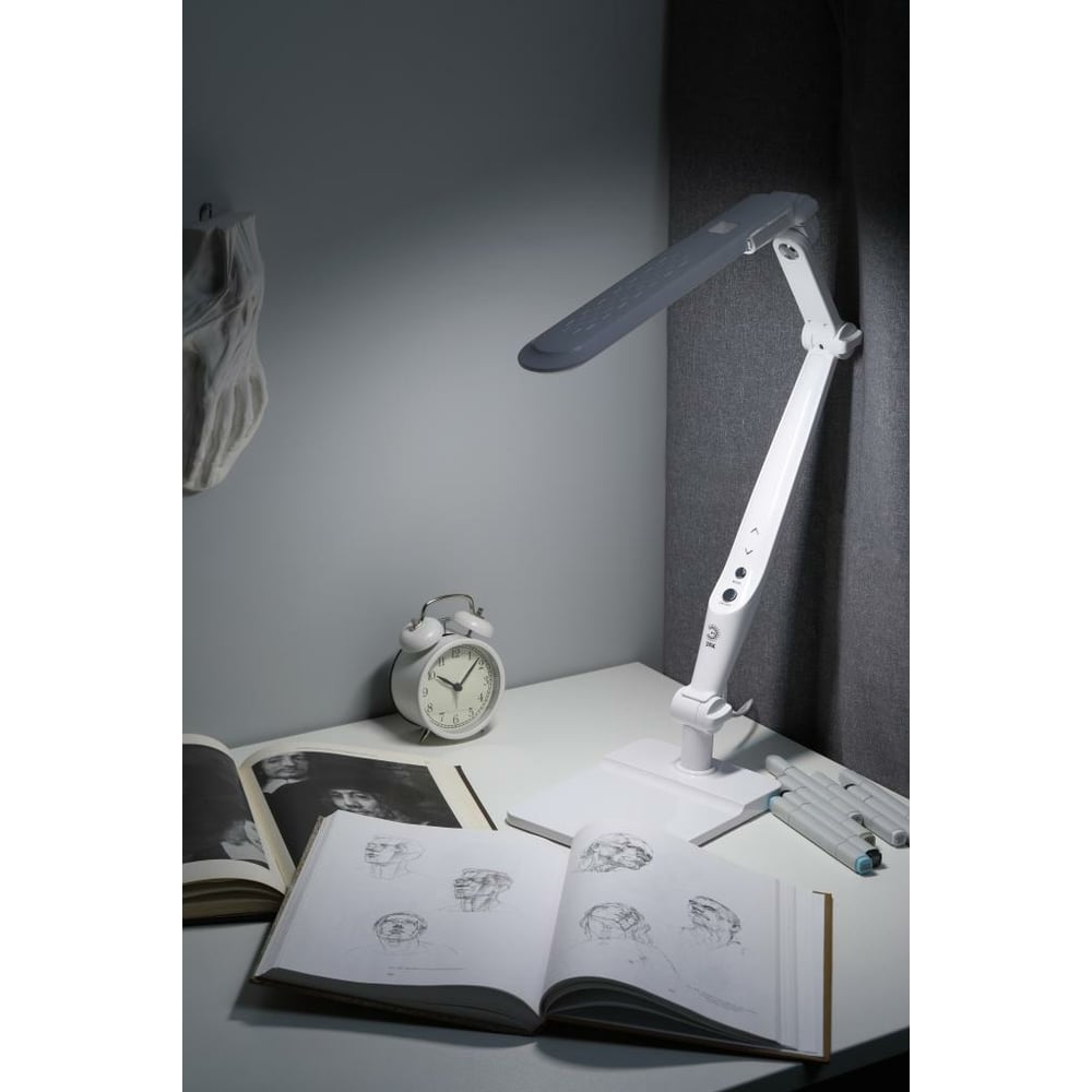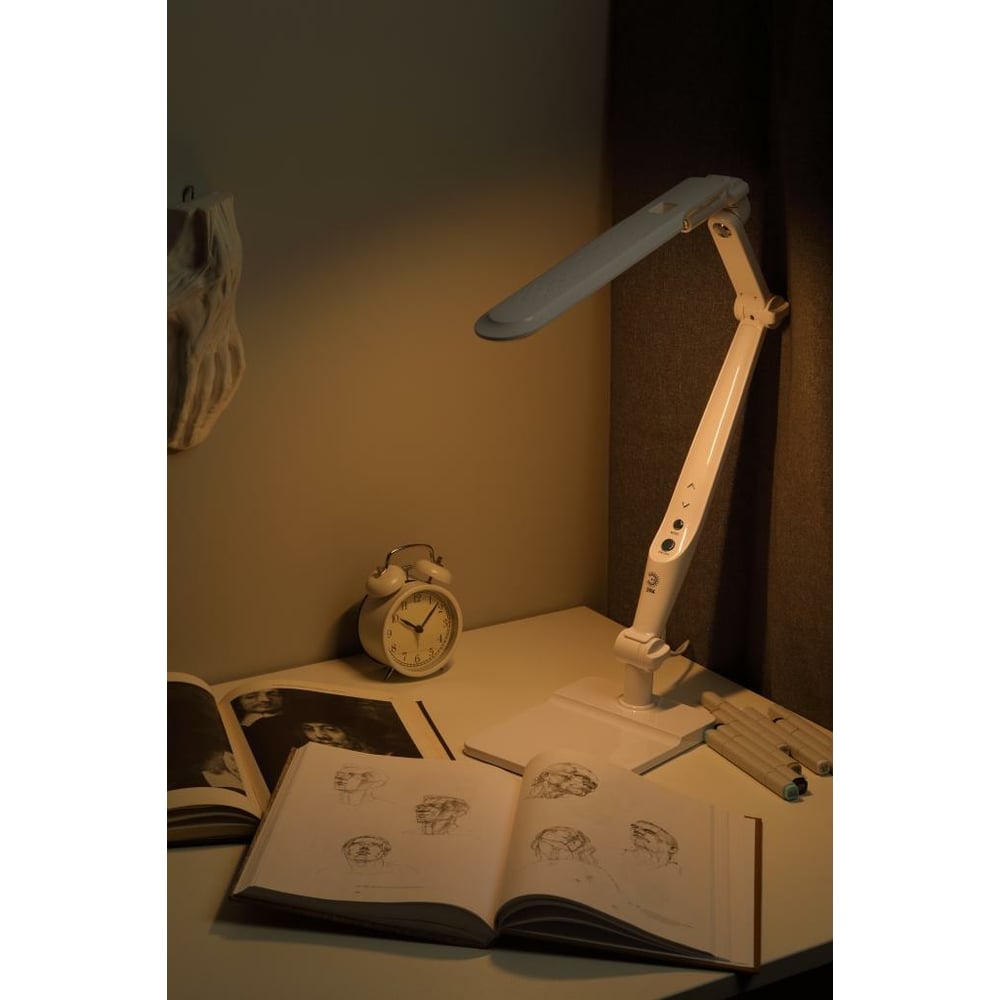 Настольный светодиодный светильник ЭРА NLED-497-12W-W на струбцине и с основанием, белый Б0052770