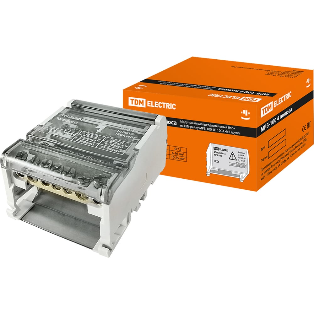 Модульный распределительный блок на DIN-рейку TDM ELECTRIC МРБ-100 4П 100А 4x7 групп SQ0823-0013