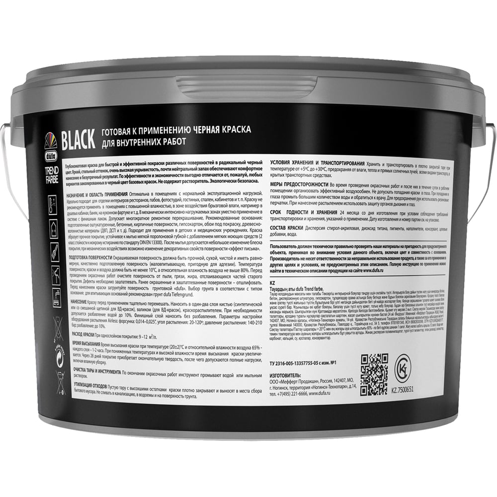 Краска Dufa TREND FARBE ВД BLACK RAL 9005, 2.5 л МП00-006781