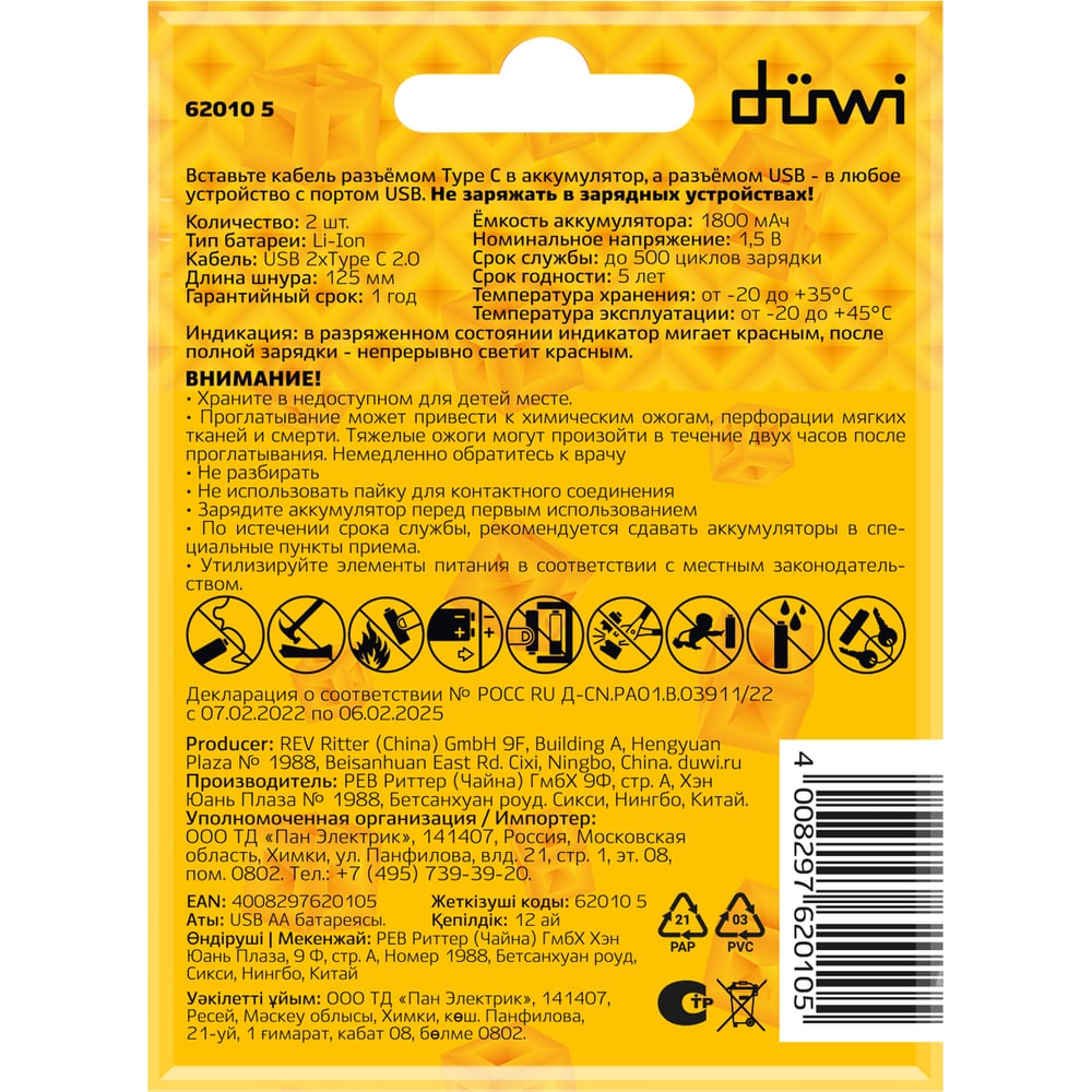 Комплект аккумуляторов duwi AA 2PACK Li-Ion 1.5V 62010 5