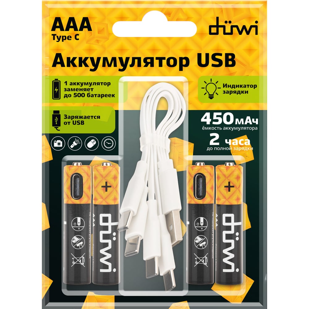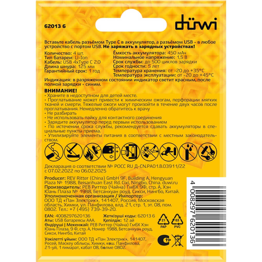 Комплект аккумуляторов duwi AAA 4PACK Li-Ion 1.5V 62013 6