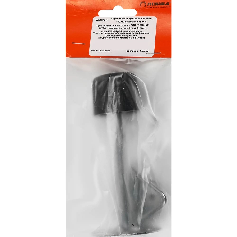 Дверной напольный ограничитель с фиксатором Левша 140 мм, черный У4-9560.Ч