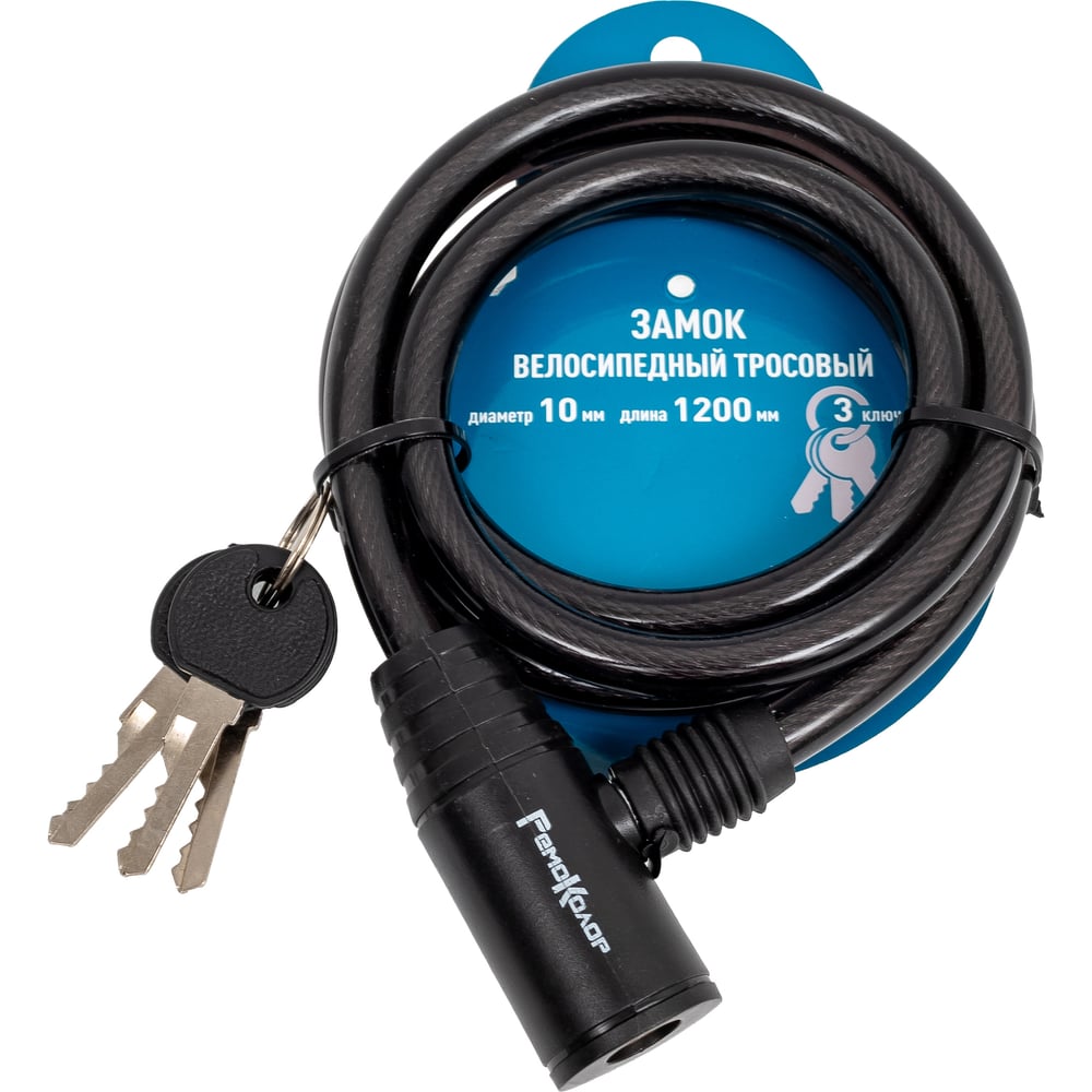 Велосипедный тросовый замок РемоКолор 3 ключа, 10x1200 мм 70-0-943