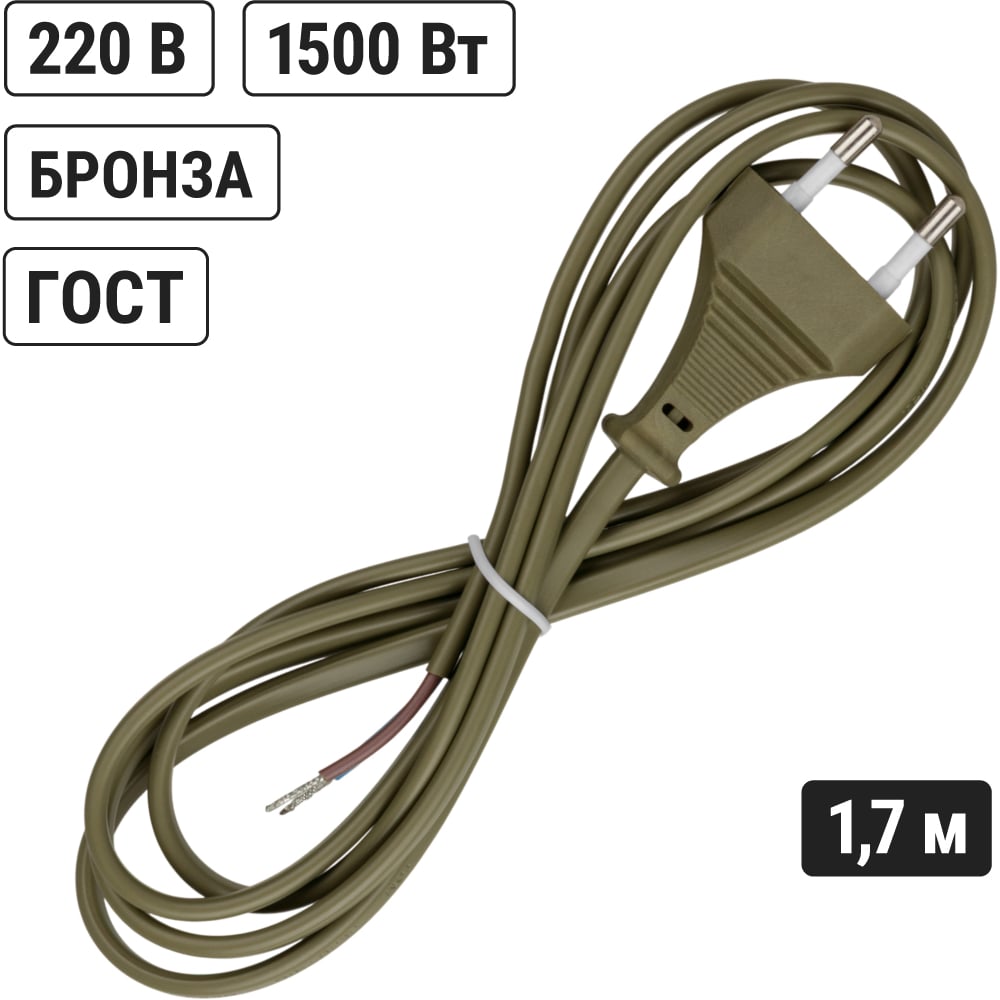 Шнур с плоской вилкой TDM ELECTRIC ШУ02 ШВВП 2x0,75мм2 1,7 м. бронза SQ1305-0013
