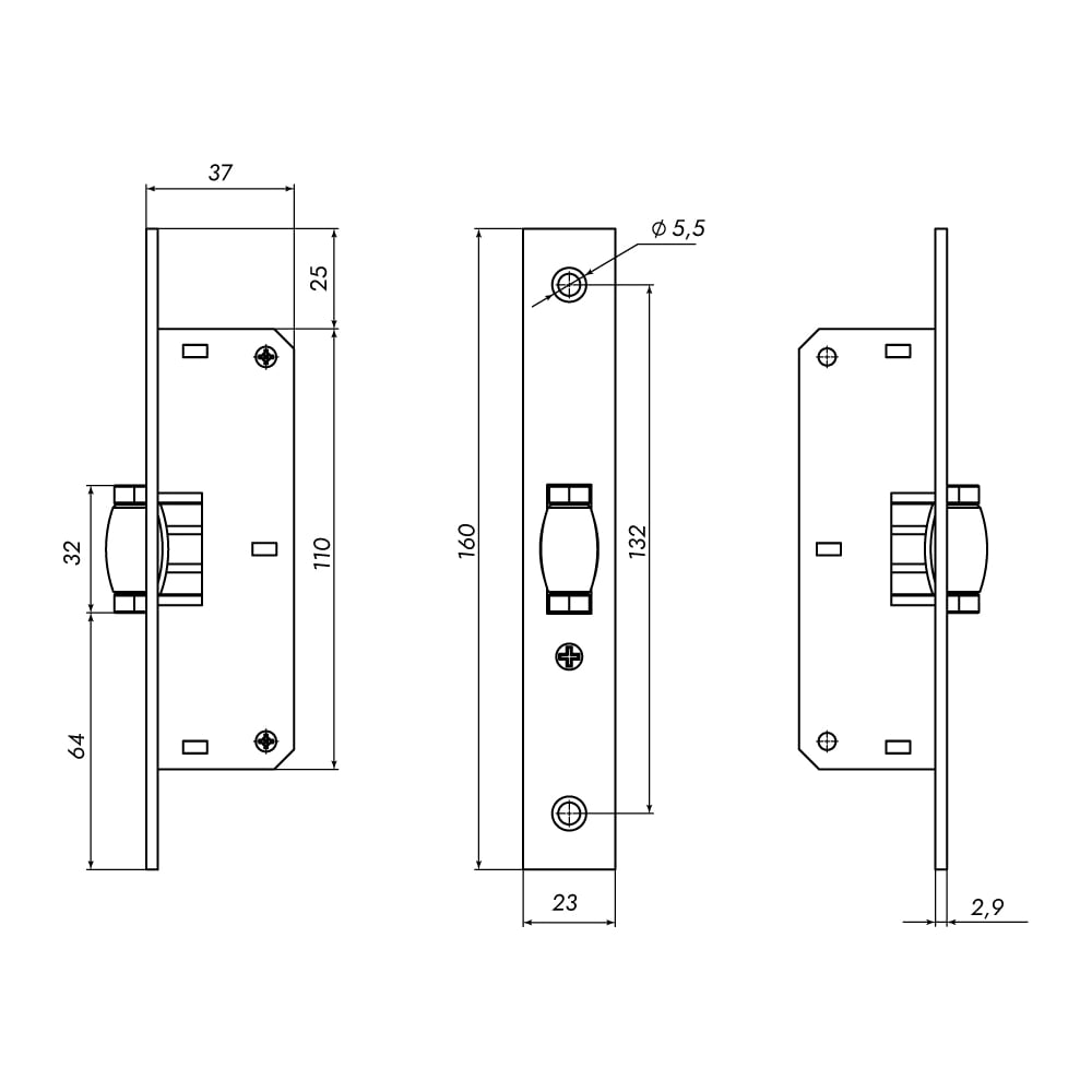 Врезная защелка Punto LR-155B СP-хром, ролик 44951