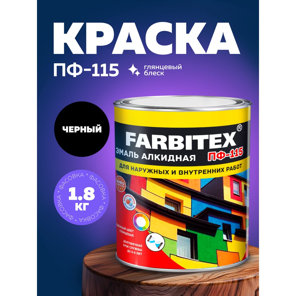 Алкидная эмаль FARBITEX ПФ-115 (черный; 1.8 кг) 4300006037