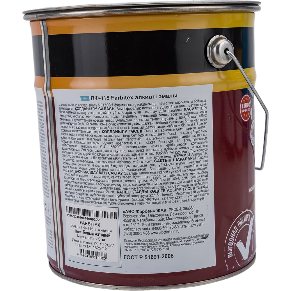 Алкидная эмаль FARBITEX ПФ-115 (матовая; белый; 5 кг) 4300004867