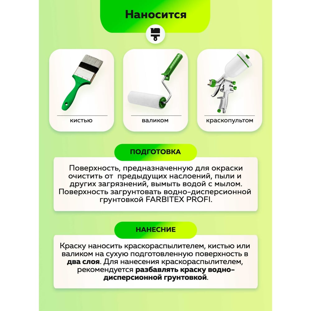 | Способ нанесения | кисть/валик/краскораспылитель |