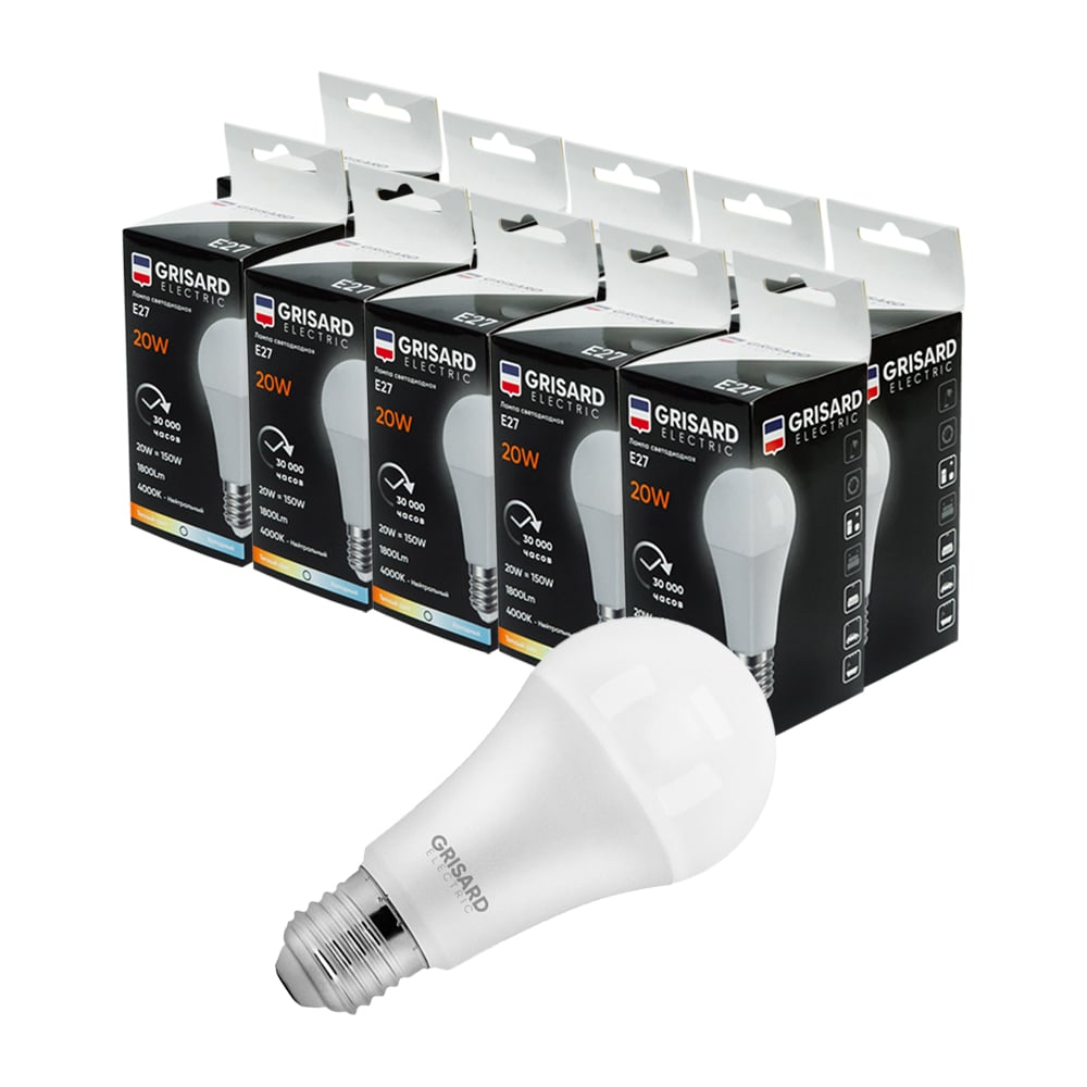 Светодиодная лампа Grisard Electric шар A60 Е27 20Вт 4000К 220В 10шт GRE-002-0012