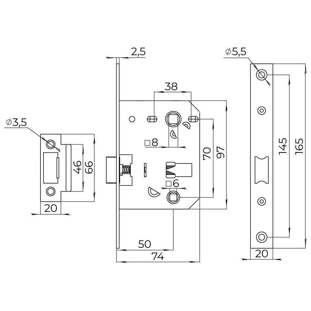 Врезная защелка Ajax LP72-50 CP хром 44507