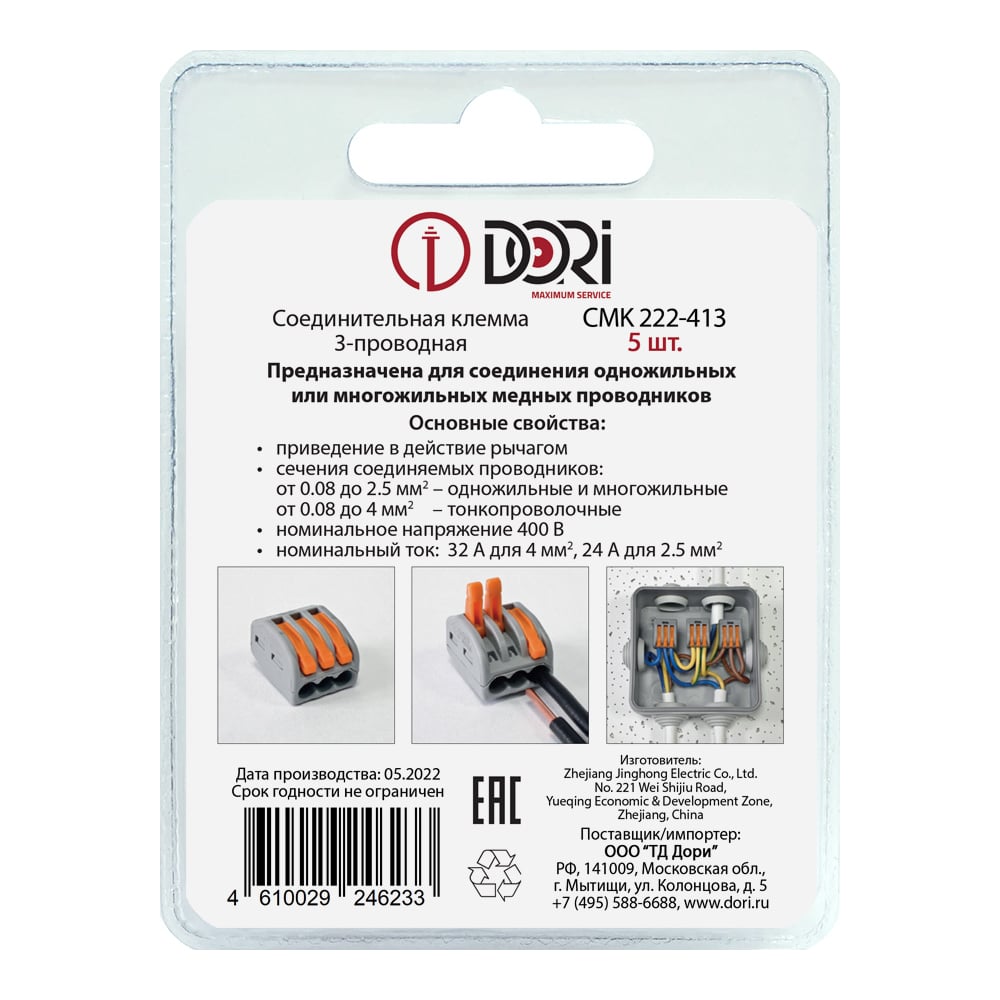 | Количество зажимаемых проводов | 3 шт |