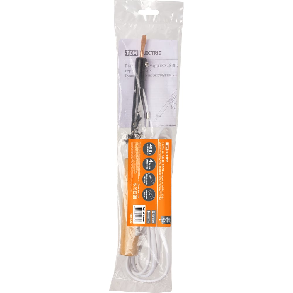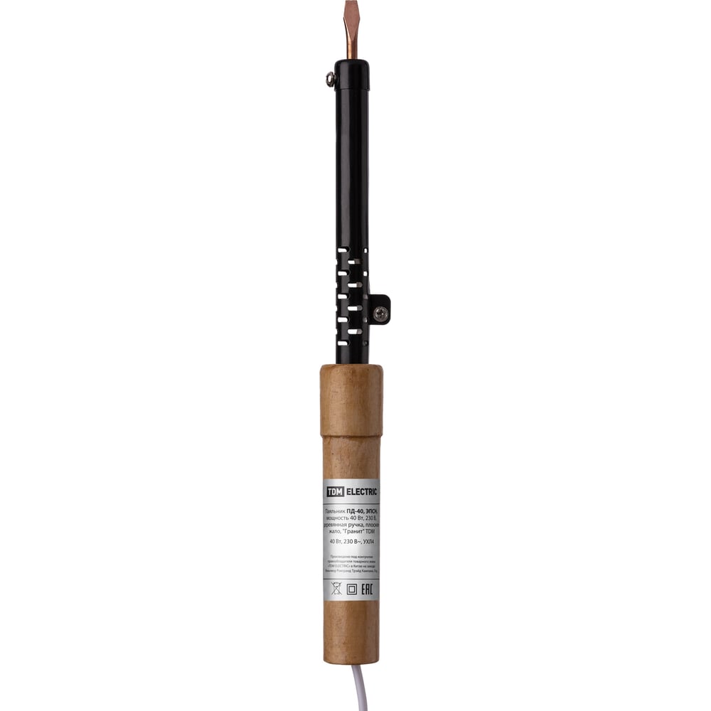 Паяльник электрический с деревянной ручкой ПД-40 TDM ELECTRIC, ЭПСН, мощность 40 Вт, 230 В, плоское жало, серия "Гранит" SQ1025-0402