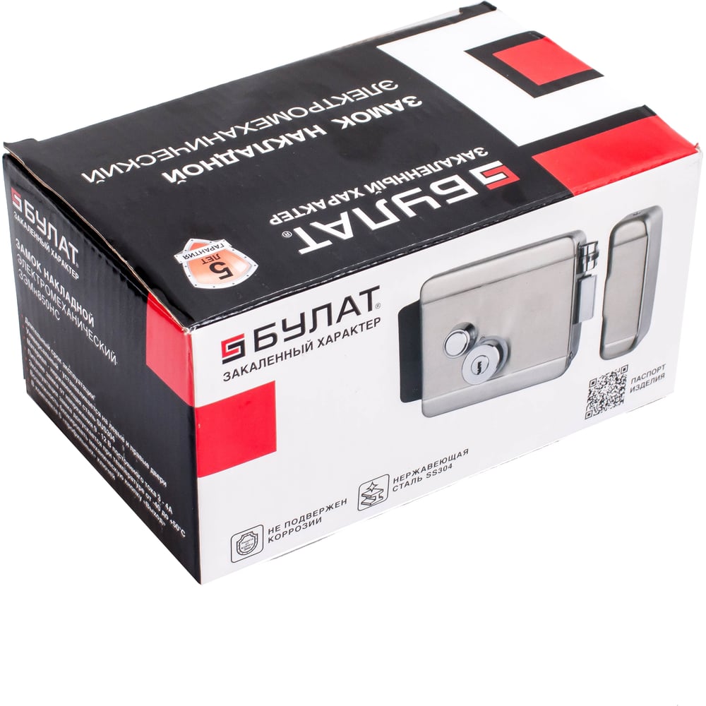 Накладной электромеханический замок БУЛАТ ЗЭМн 850 НС нержавеющая сталь ДЛЯ КАЛИТОК И ВОРОТ 14094