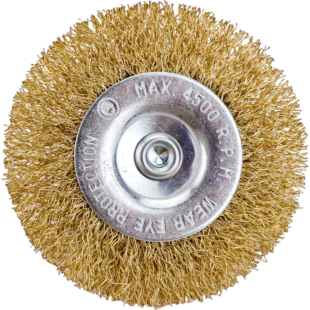 Щетка-крацовка дисковая со шпилькой, витая латунированная проволока, 75 мм GROSSMEISTER 021118002