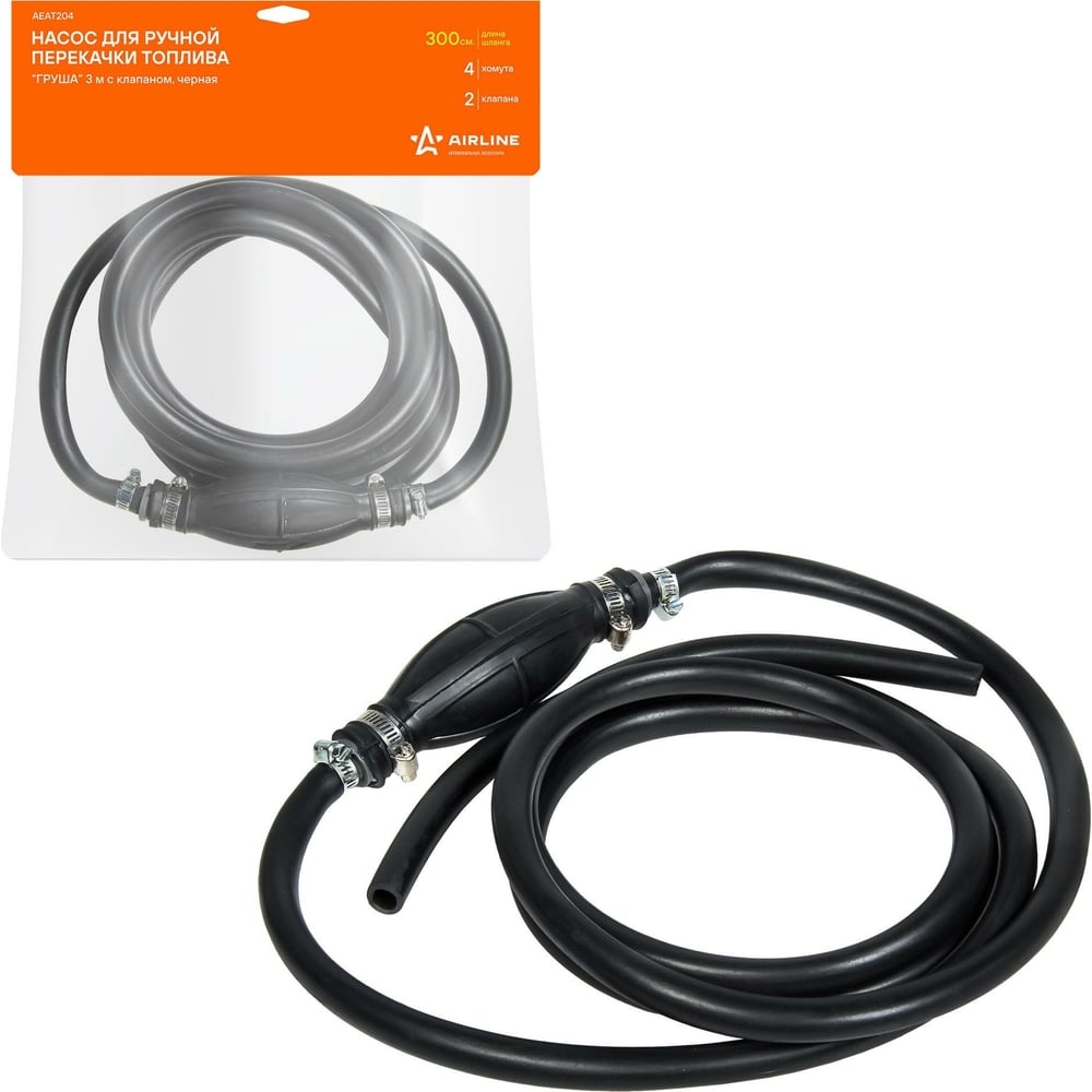 Насос для ручной перекачки топлива Airline Груша 3 м, с клапаном, черная AEAT204