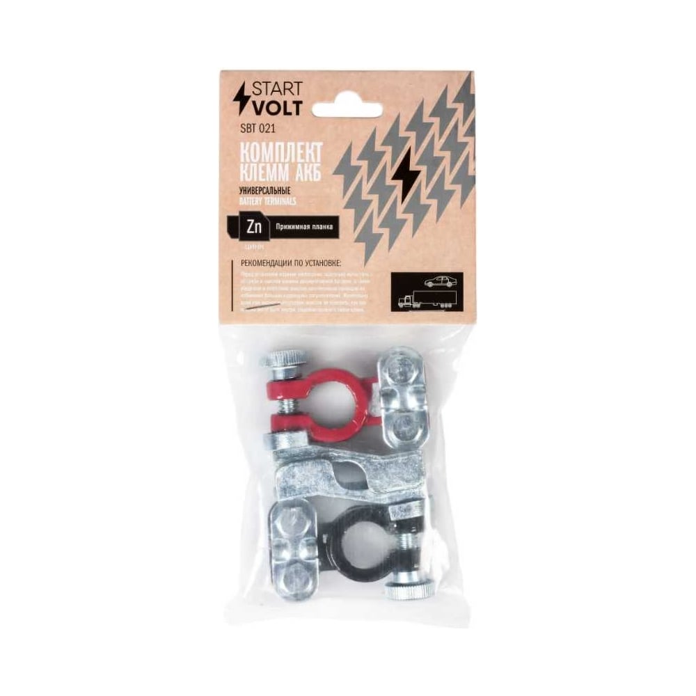 Клеммы АКБ StartVOLT в комплекте цинк с покрытием, прижимная планка SBT 021