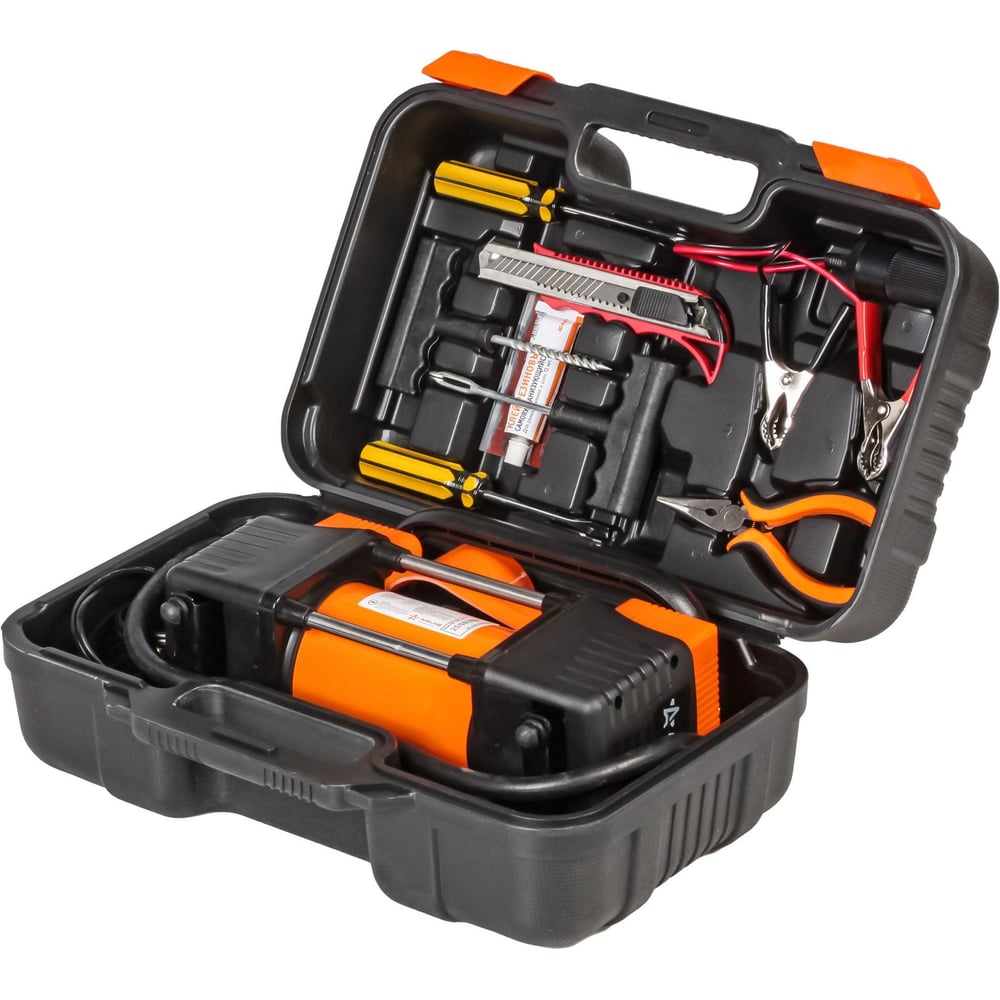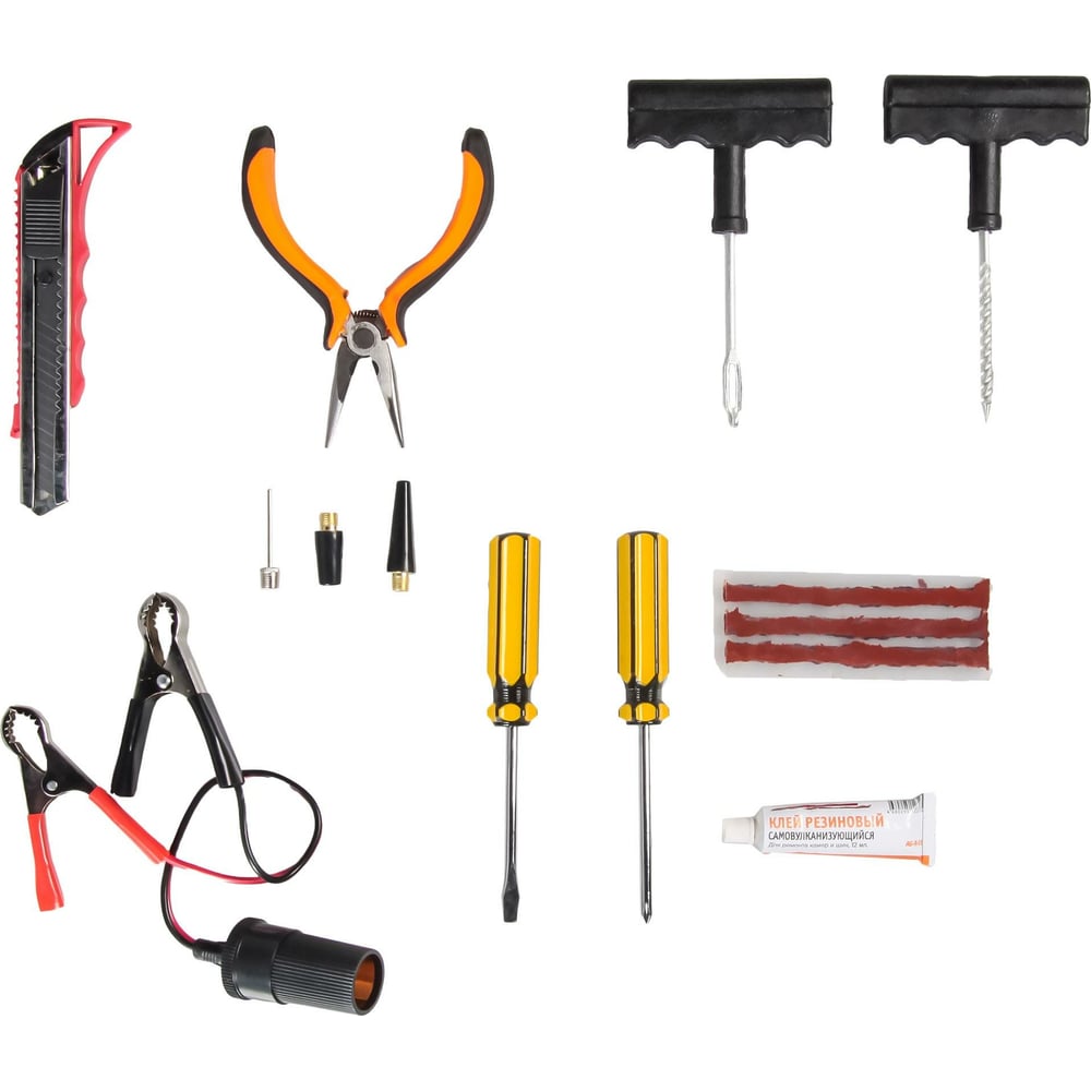 Двухпоршневой компрессор AIRLINE X5 с комплектом инструмента, 2 отвертки, ремкомплект для бескамерных шин, нож, плоcкогубцы CA-020-01NR