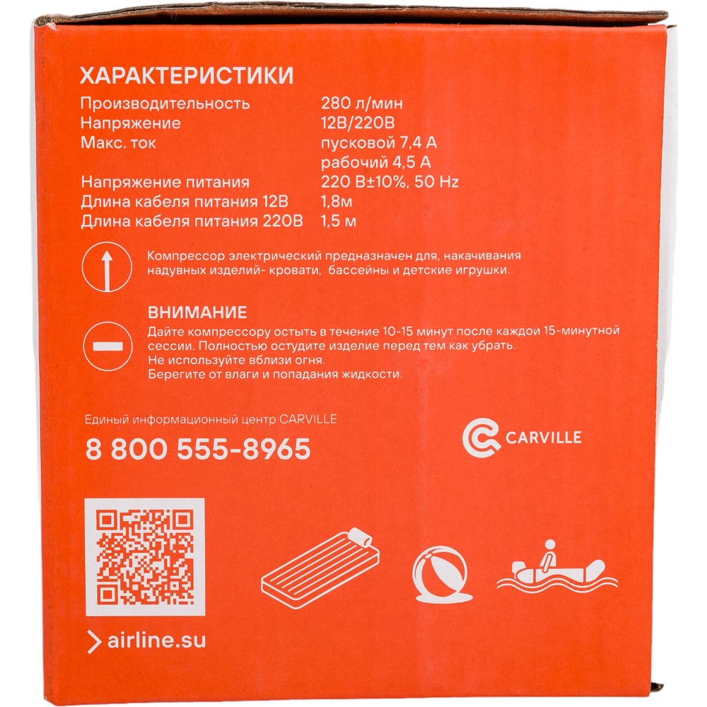 Компрессор для матраса AIRLINE 12/220 В, 280 л/мин KK-04