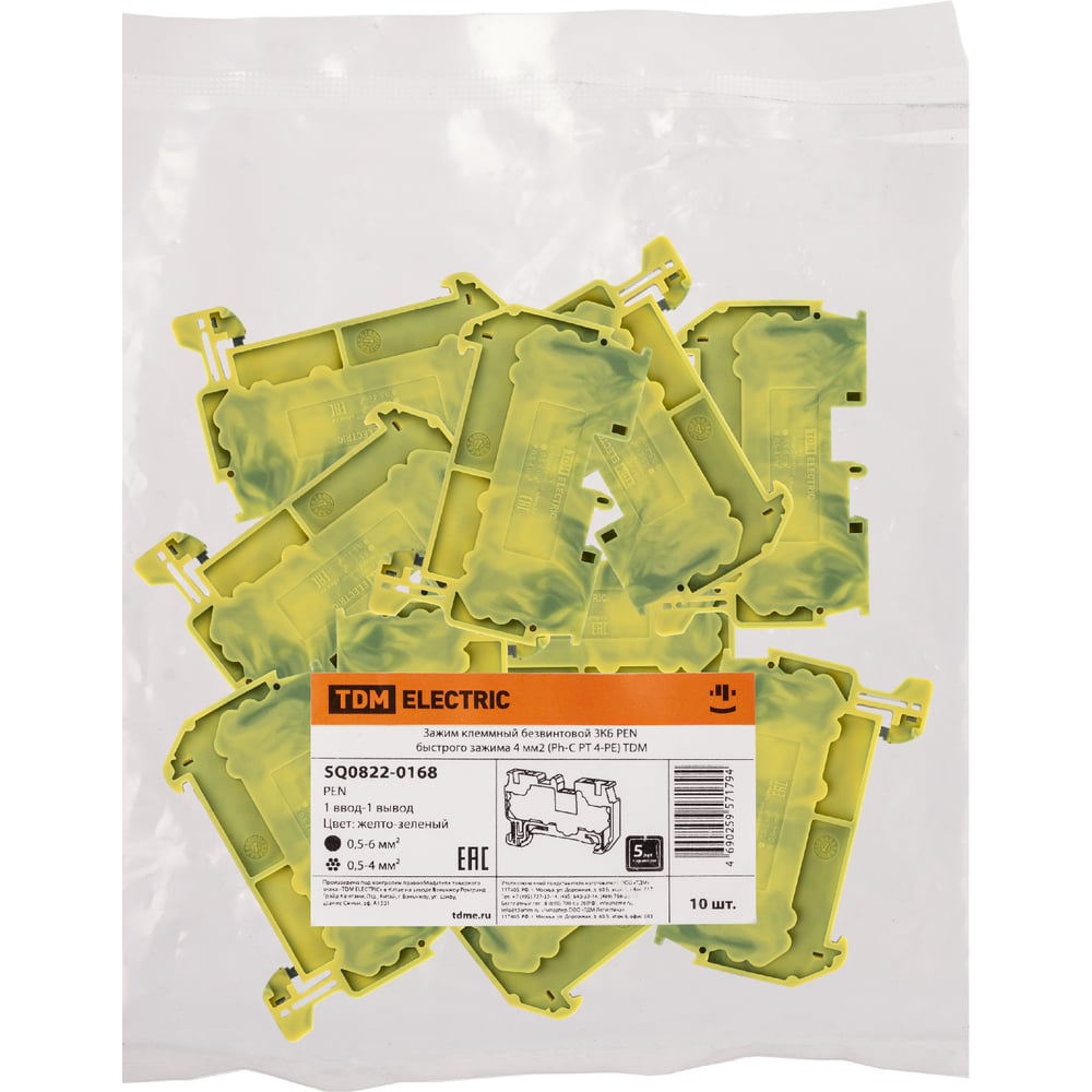 Безвинтовой клеммный зажим TDM ELECTRIC ЗКБ PEN быстрого зажима, 4 кв. мм (Ph-C PT 4-PE) SQ0822-0168