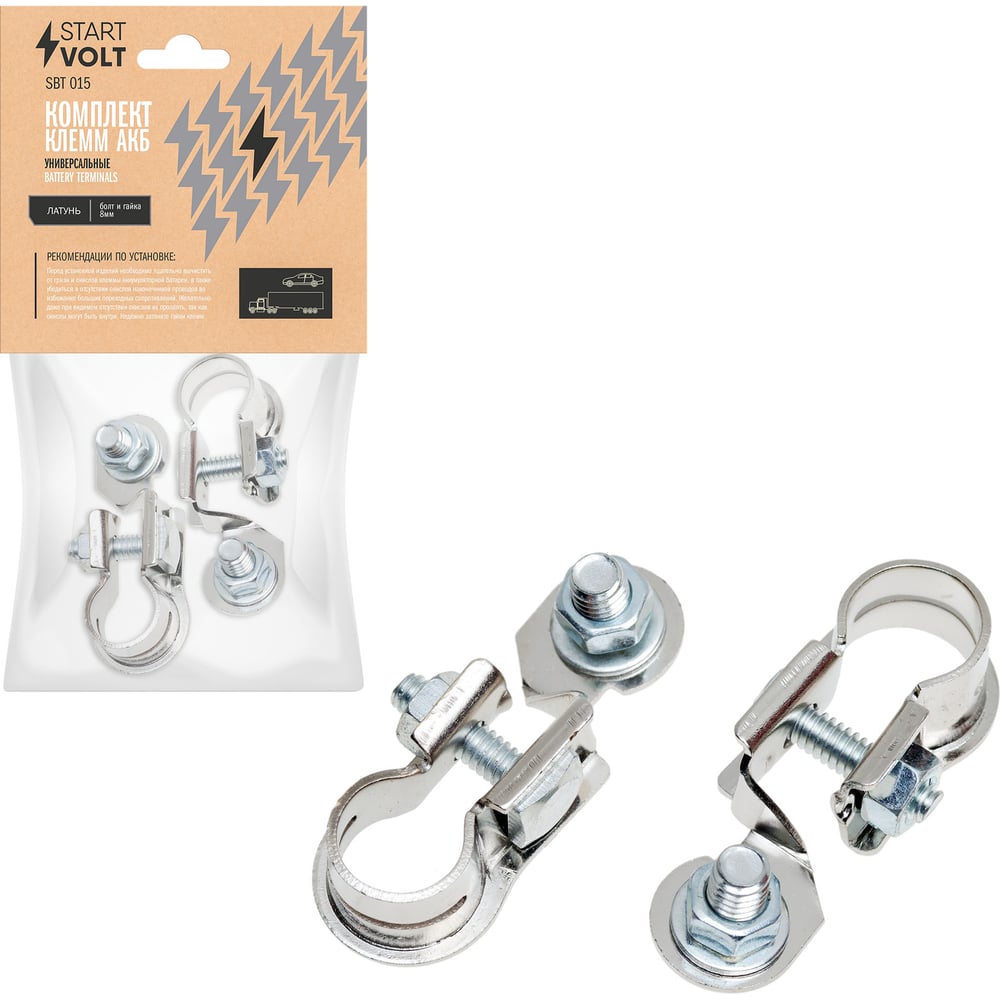 Клеммы АКБ в комплекте StartVOLT латунь с цинковым покрытием, болт и гайка 8мм SBT 015