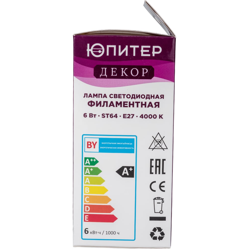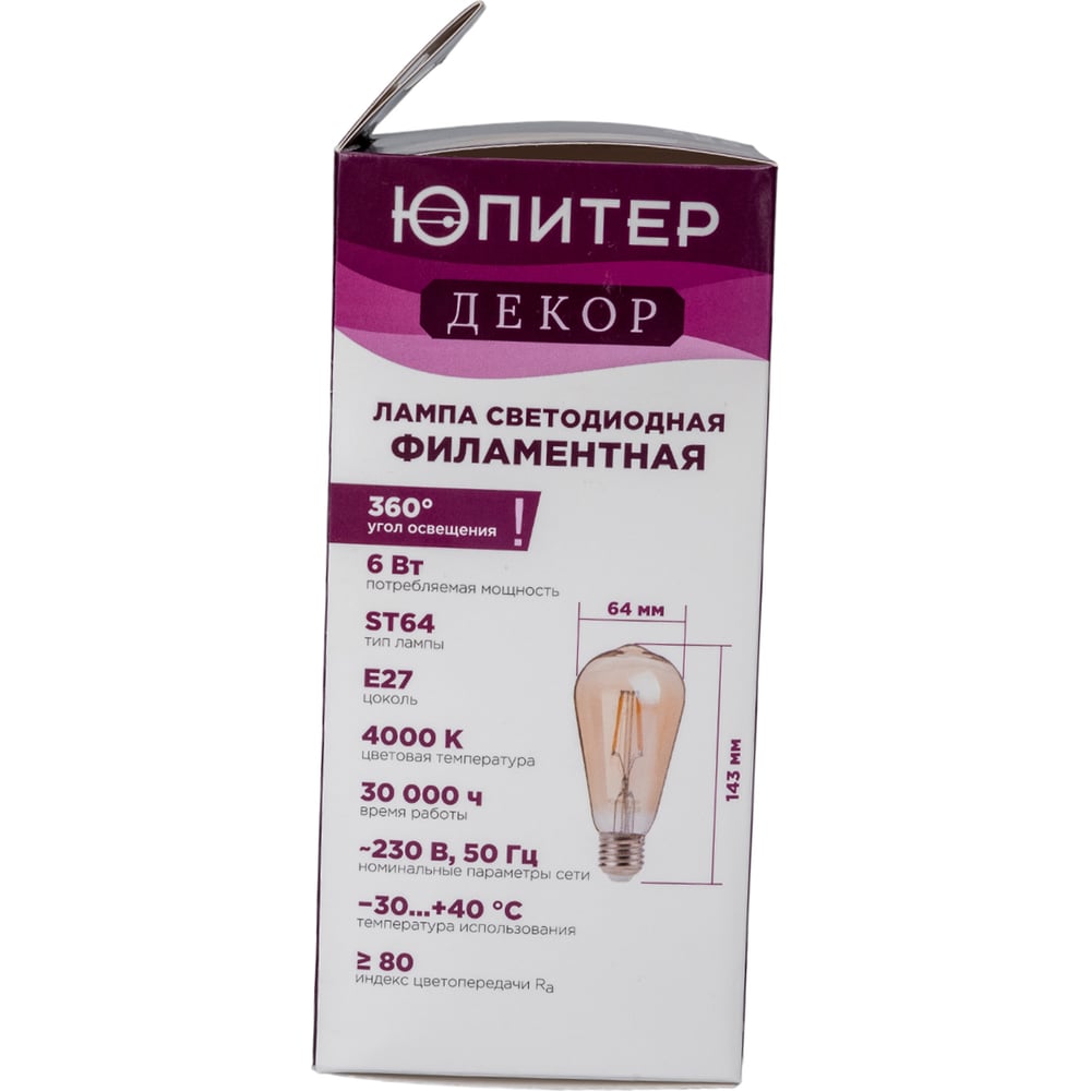 Светодиодная филаментная лампа ЮПИТЕР E27 ST64 6 Вт 4000К JP6006-02