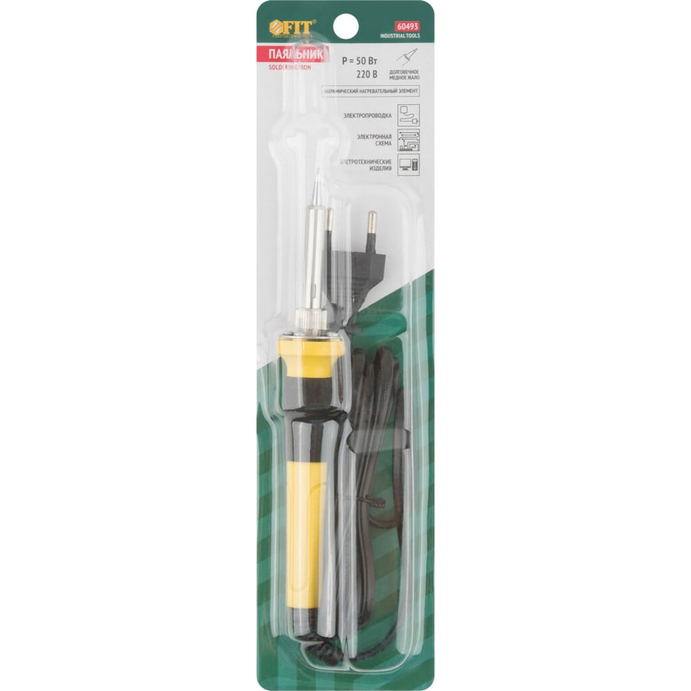 Паяльник FIT 220 В, керамический нагревательный элемент, пластиковая ручка, конусное медное жало, 50 Вт 60493