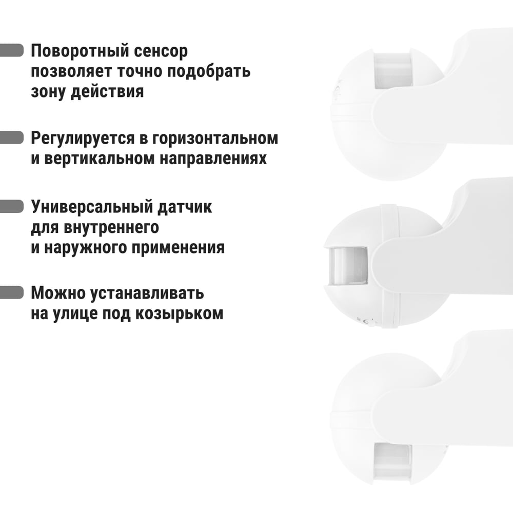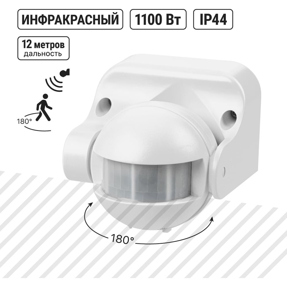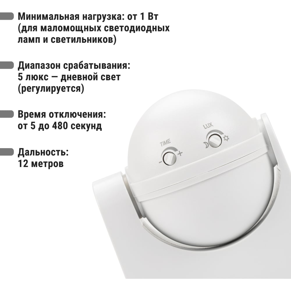 Тип установки настенный Цвет корпуса белый ГОСТ нет Напряжение 230 В Модельный ряд ДДС Монтаж накладной Уличный есть Светодиодный индикатор нет Таймер да Элементы питания сеть Рабочая температура от -20 до +45 °С Max угол обзора 180 град Степень защиты корпуса 42 IP Wi-Fi нет Max мощность нагрузки 1100 Вт Фотореле нет Звуковой сигнал нет Возможность угловой установки нет Задержка времени выключения 5 сек - 8 мин Освещенность датчика 5 - 2000 Люкс Дальность действия 12 м Рекомендуемая высота установки 1.7 м Max задержка выключения/отключения 8 мин Подключение трехпроводной Принцип действия инфракрасный Виды режимов LUX/TIME